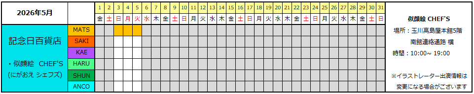 5月の開催:5/3(日・祝)~5/5(火・祝)
