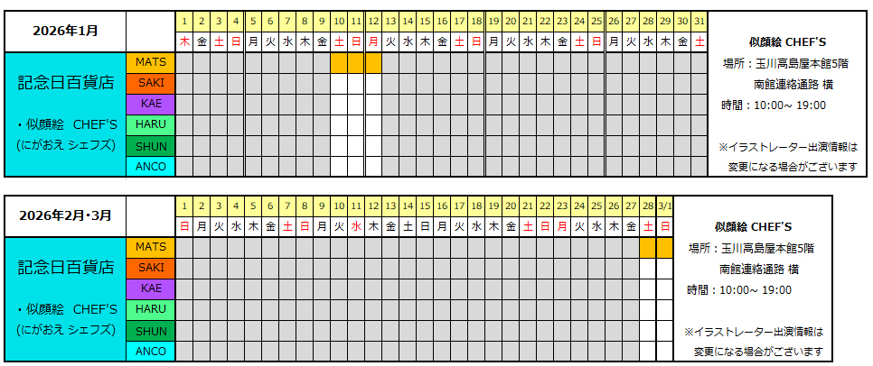 1月の開催:1/10(土)・1/11(日)・1/12(祝)